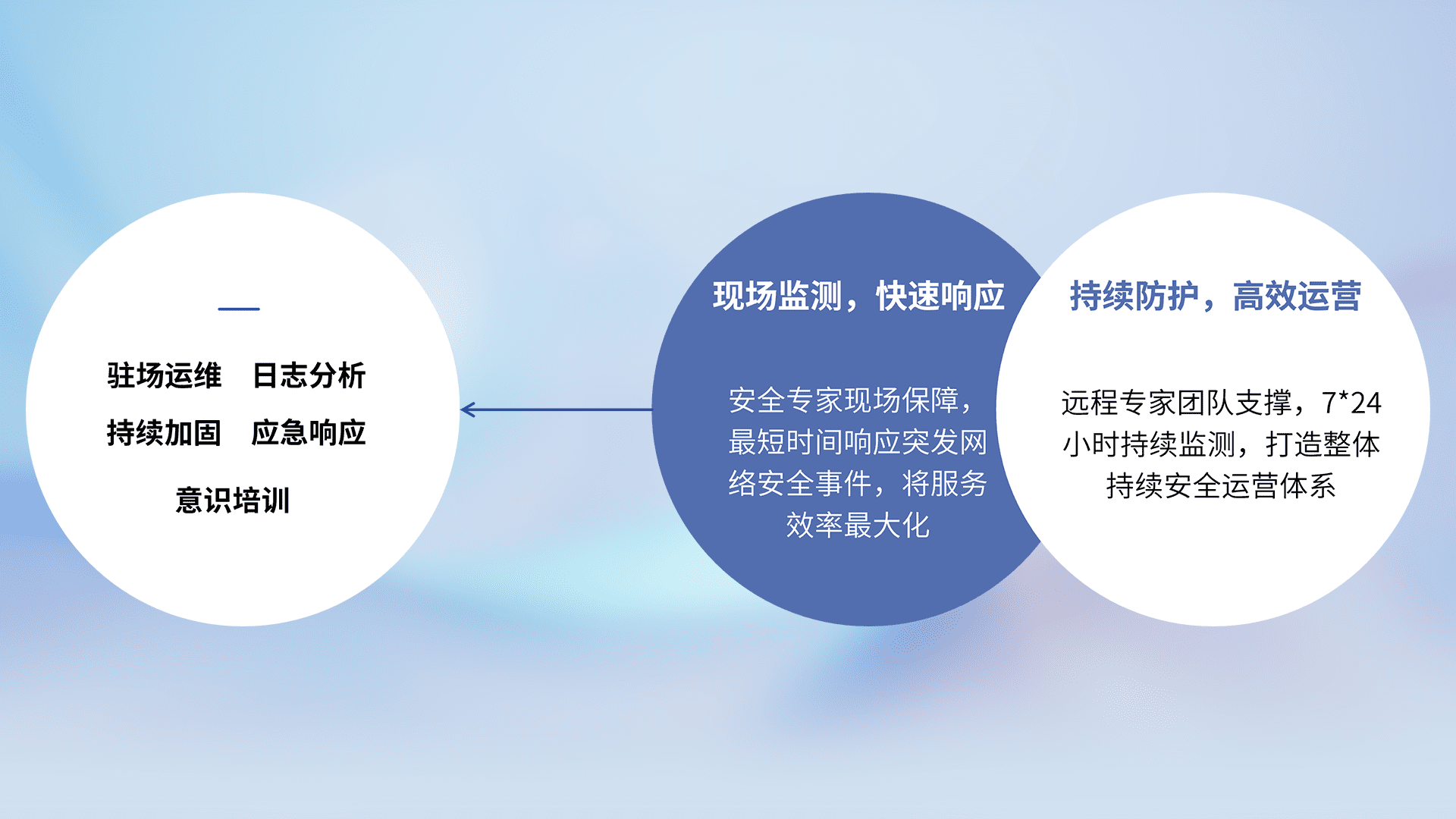 针对客户行业特性,,,提供专属的一站式安全管理服务,,,帮助客户全面感知网络空间威胁,,通过安全专家的线上、、、、线下防护支持,,实现风险闭环,,,,将安全保障常态化,,,为客户打造常态化安全运维运营服务。。。